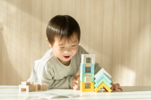 子供の遊びの基本となる積み木。積み重ねたり、崩したりと遊びながら視知感認知を養う事が出来ると思いました。